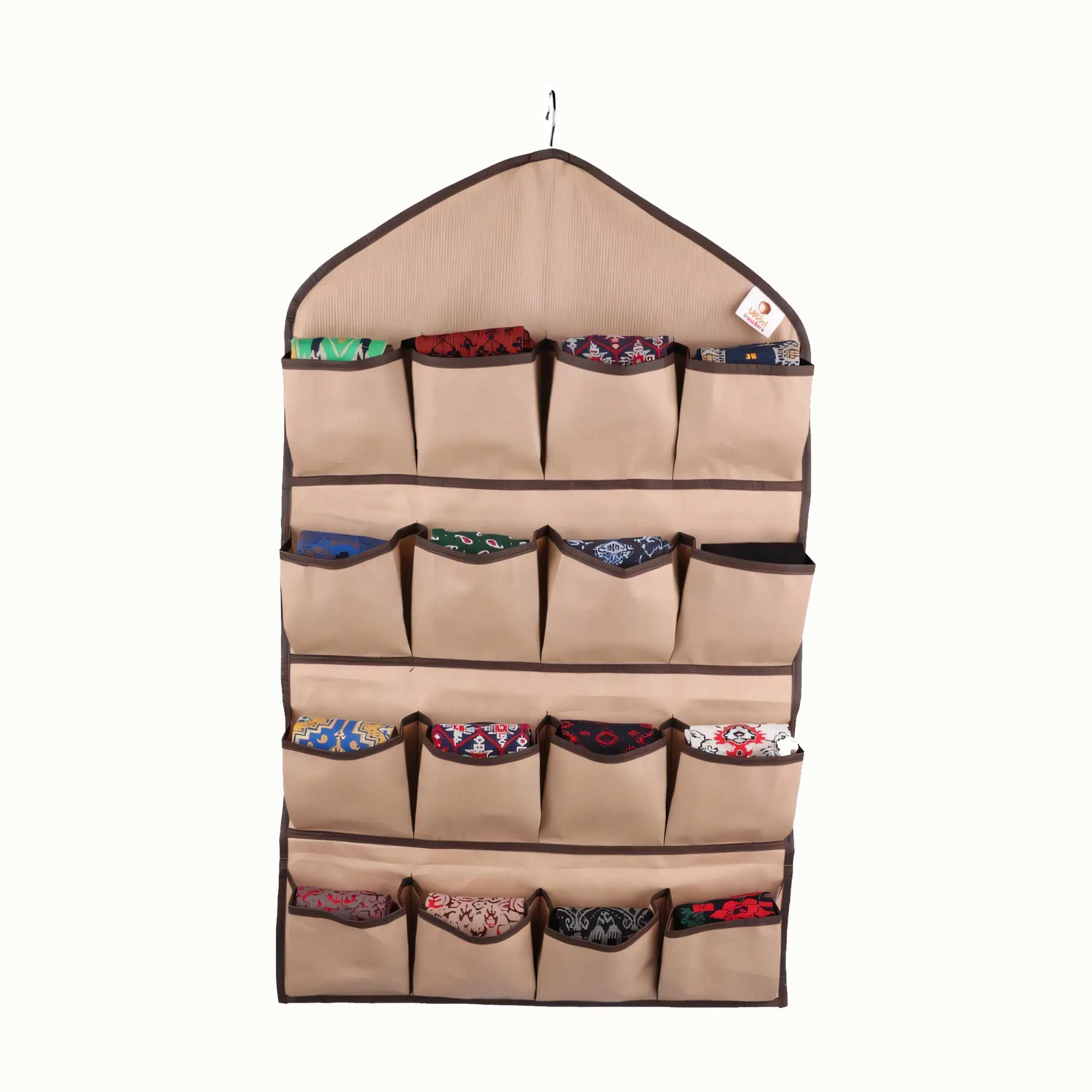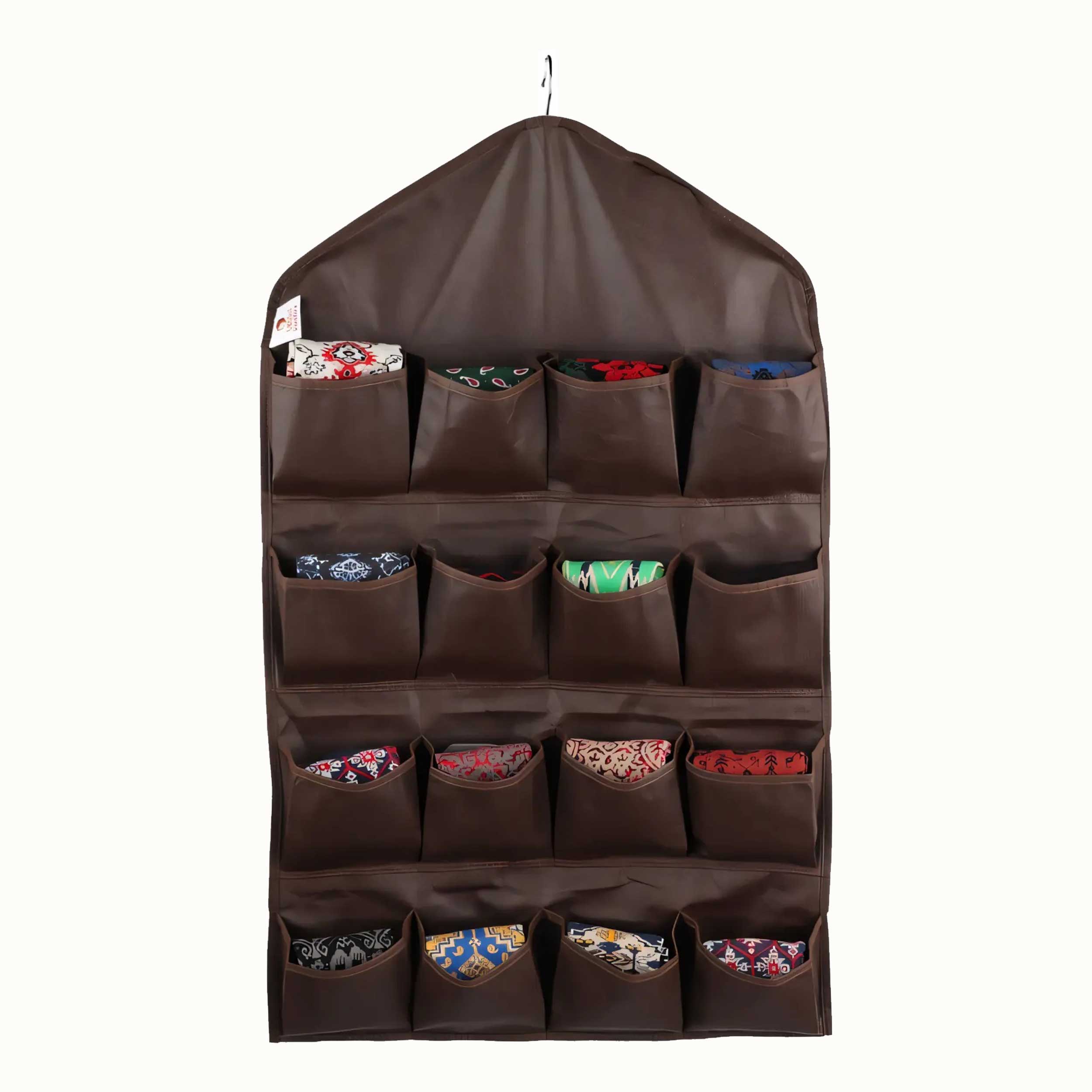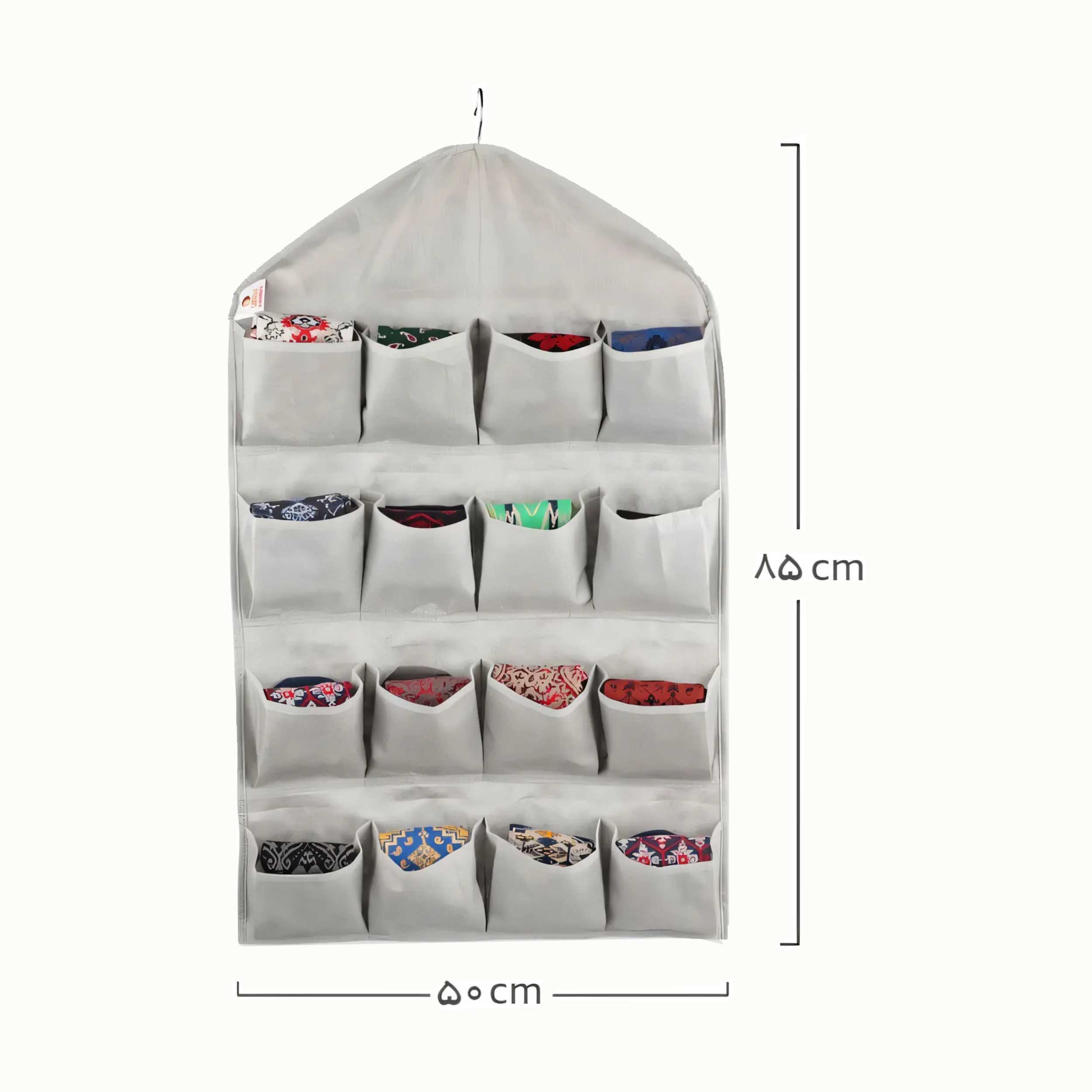 اگر به فضای بیشتری برای مرتبکردن وسایل کوچک نیاز دارید، جاجورابی آویز ۱۶تایی بهترین انتخاب است. این محصول با ۱۶ محفظه جداگانه به شما امکان میدهد جورابها، شالها و لوازم کوچک دیگر را با نظم کامل در کمد خود قرار دهید.